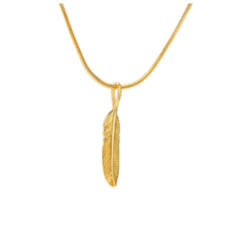Collier plume dorée unisexe en argent sterling 925