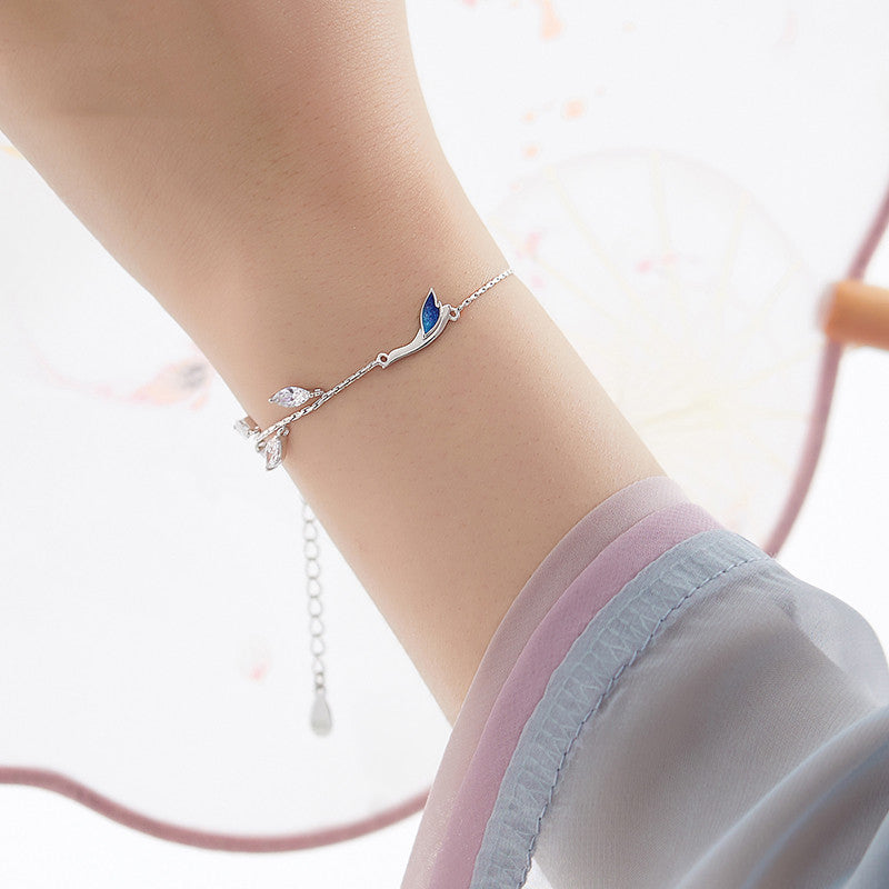 Bracelet délicat en argent 925 avec zircons marquise et pierre bleutée